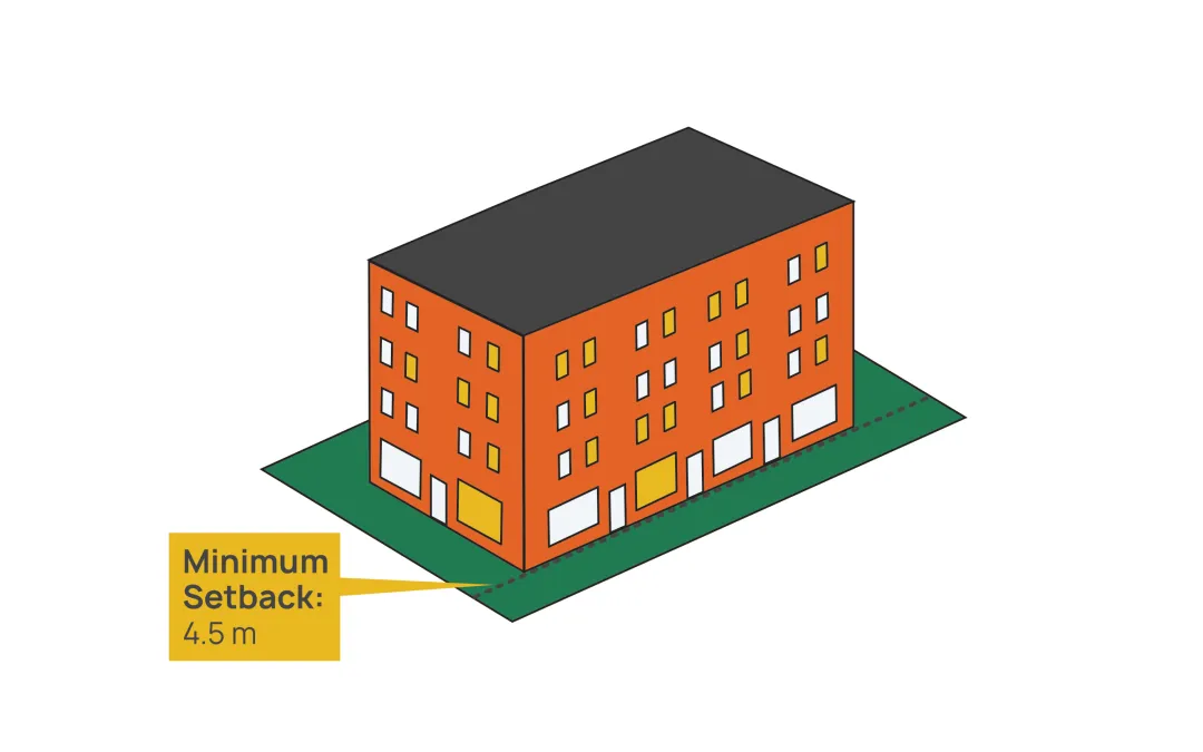 Don’t forget about landscaping! For every 30 m² of setback area, you’ll need to plant one tree and two shrubs to create a welcoming environment.
