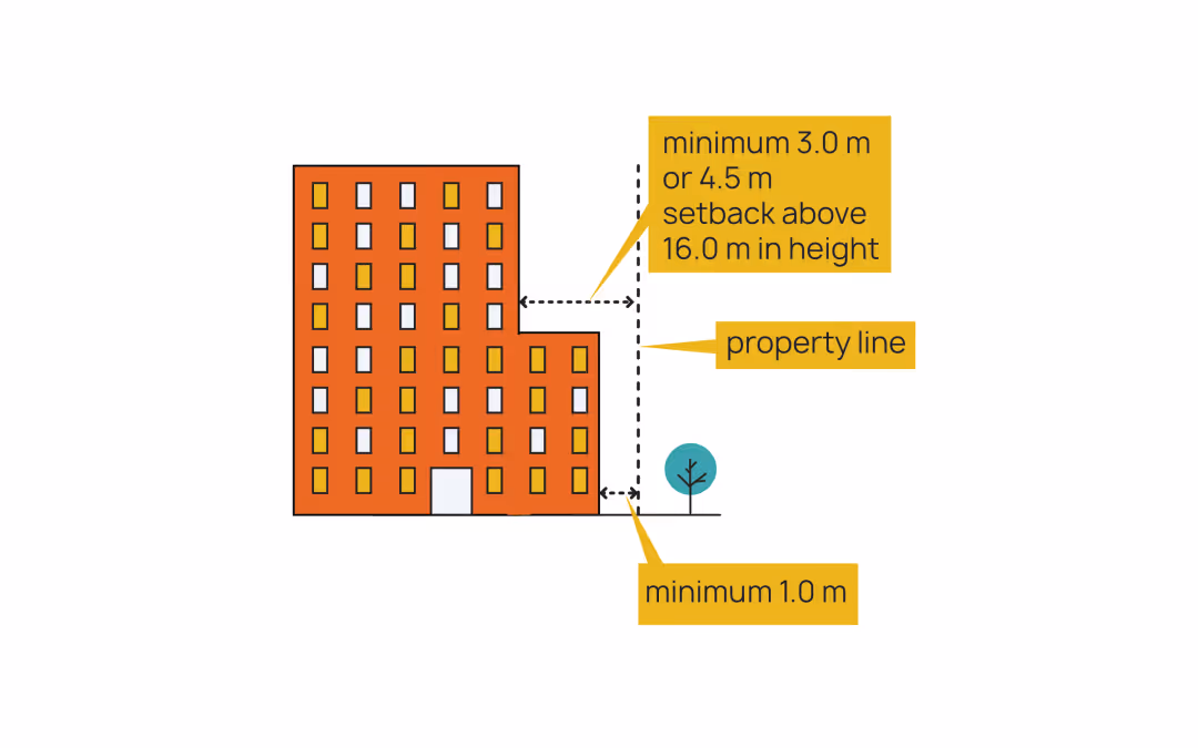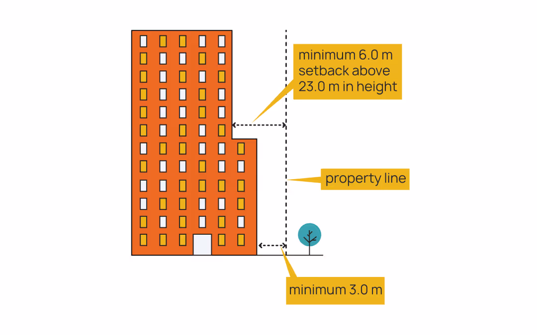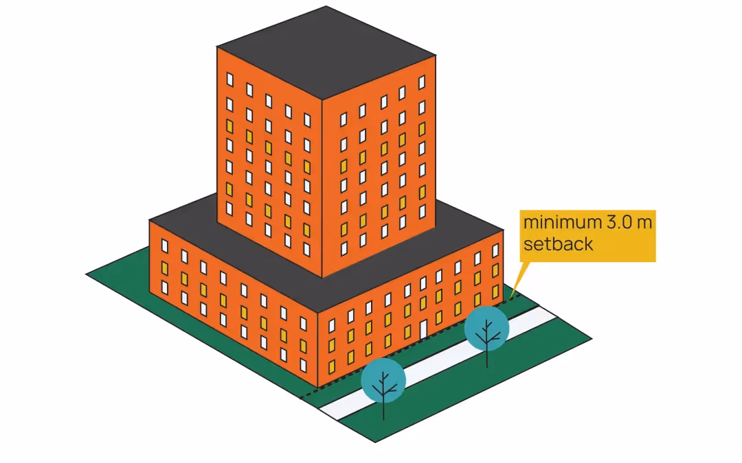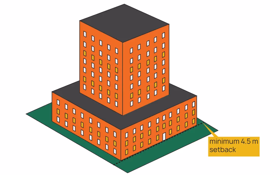These setbacks help create a balance between density and liveability, ensuring buildings integrate well with their surroundings while maximizing usable space.