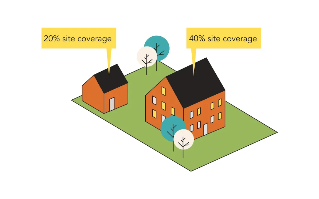 What we mean is that more site planning decisions need to be made up front, by you. For example, the maximum site coverage for garages and backyard housing is 20% of the site area. So, you need to decide how you want to divide the site coverage between the main building and the garage/backyard house. For instance, if you allocate all 60% of the site coverage to the main building, you will not be able to build a garage, and if you cover 20% of the lot with a garage, you’ll have a much smaller residential building. Nothing wrong with either scenario, just requires some thought.