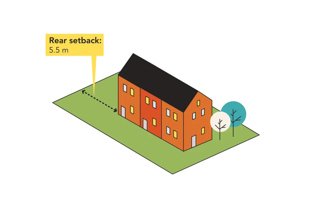 The minimum rear setback in the RSM is a flat 5.5 metres. This is a lot smaller than the RS zone where the minimum rear setback is 10.0 metres.